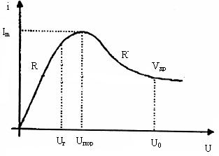При Е > ЕКР происходит «заброс» электронов в верхнюю долину, где увеличение приложенного напряжения уменьшает подвижность электронов, что равносильно уменьшению тока или увеличению сопротивления этой области, т. е. в данной области имеет место отрицательное сопротивление.