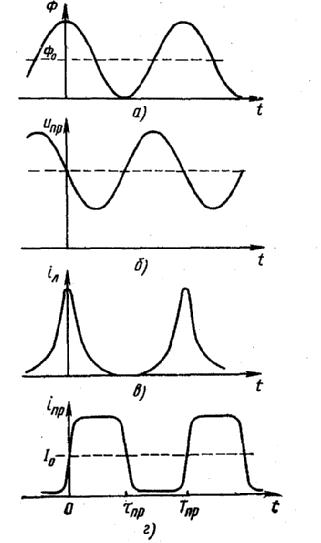 — комплексные амплитуды первой гармоники тока и напряжения пролетной области. Так как ток iл синфазен с потоком Ф(t), а напряжение uпр пропорционально dФ/dt, то