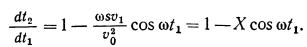 Отвлечемся первоначально от действия пространственного заряда пучка и будем считать, что движение электронов в трубе дрейфа является чисто инерциальным. Тогда электрон, прошедший центр первого зазора в момент t1, входит во второй зазор в момент времени t2, равный