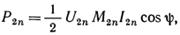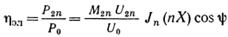 Амплитуда тока, наведенного в выходном резонаторе, равна амплитуде конвекционного тока I 2п, умноженной на коэффициент взаимодействия пучка с зазором при частоте данной гармоники. Обозначим этот коэффициент через М2п. Мощность, отдаваемая электронным пучком в выходном резонаторе на n-й гармонике, может быть теперь определена по обычным электротехническим соотношениям в виде: