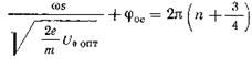 Это уравнение при фиксир ванной величине п приводится к знакомому виду λ2U0 = const. Через U0 опт обозначено оптимальное анодное (ускоряющее) напряжение, при котором сгустки попадают в максимальное тормозящее поле выходного зазора; генерируемая мощность проходит при этом через максимум.