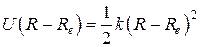 В начале будем исходить из максимально упрощенной модели. Очевидно, таковой является система из двух материальных точек с массами, равными массам ядер молекулы, и противоположными зарядами. В случае молекул, состоящих из одинаковых атомов, например H2, материальные точки нашей модели не имеют заряда. В случае же молекулы HCl, точка, соответствующая водороду, имеет отрицательный заряд, а точка, соответствующая хлору – положительный. В данном приближении дипольный момент d молекулы линейно зависит от расстояния между ядрами. Далее, предположим, что потенциал взаимодействия ядер строго гармонический, т.е. потенциальная энергия пропорциональна квадрату отклонения расстояния между ядрами R от равновесного расстояния Re: