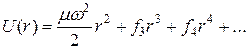 Механическая ангармоничность связана с отличием потенциала взаимодействия ядер молекулы от строго гармонического. Как известно, потенциальная функция реальных молекул имеет минимум при r =0 (равновесное расстояние между ядрами), стремится к бесконечности при стремлении r к 0 (возрастание силы отталкивания при сближении ядер на малое расстояние) и стремится к некоторой постоянной величине при стремлении r к бесконечности. Формально механическая ангармоничность описывается введением разложения потенциальной функции по колебательной координате r:
