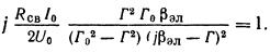Из качественных соображений было показано, что наибольший интерес представляет случай, когда средняя скорость электронов v0 близка к фазовой скорости волны. С другой стороны, можно интуитивно предположить, что постоянная распространения Г в присутствии электронного пучка не должна существенно отличаться от постоянной распространения Г0 в «холодной» замедляющей системе. Поэтому имеет смысл подробнее проанализировать характеристическое уравнение при близких значениях Г, Г0 и βэл.