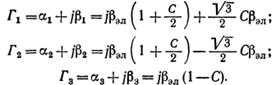 Однако «холодная» замедляющая система возбуждается в режиме распространяющихся волн и, как было предположено в начале расчета, не имеет активных потерь. Поэтому α0 = 0 и вместо Г0 следует подставить чисто мнимую величину jβ0; при принятых допущениях нужно положить: β0= βэл.Тогда постоянные распространения трех волн в присутствии электронного потока оказываются равными