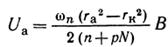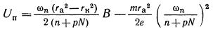 Постоянное анодное напряжение U а, при котором бесконечно малая амплитуда СВЧ колебаний в резонаторной системе обеспечивает попадание электронов на анод в случае В > Вкр, называется пороговым напряжением магнетрона Un. Если проанализировать более подробно условия самовозбуждения цилиндрического многорезонаторного магнетрона, то величина порогового напряжения оказывается связанной с магнитной индукцией В, радиусами анода и катода rа и rк, номером вида колебаний п и номером пространственной гармоники р уравнением Хартри
