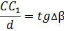 По значению угловой поправки и расстоянию d от вершин угла до вехи определить величину линейного смещения СС1 направления по формуле