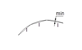 Дополнительные точки на кривой закрепляют через равные промежутки е из соображений, чтобы стрелка прогиба дуги должна быть настолько мала, чтобы вписанный многоугольник можно было практически принять за дугу окружности.