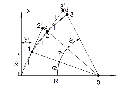По радиусу кривой R и принятой длине хорды l вычисляют длину отрезка d, называемого промежуточным перемещением.