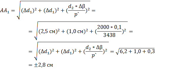 2. Погрешность ошибки отложения угла в линейной (метрической) мере представим: