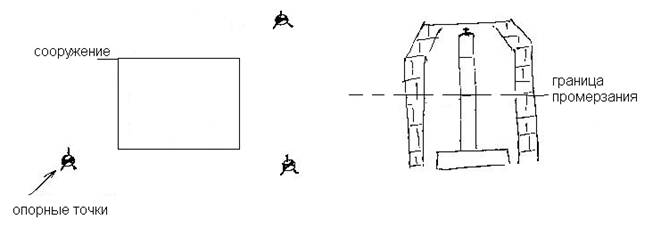 - Опорные точки располагают на устойчивых грунтах вне зоны строительных работ и возможно ближе к объекту измерения.