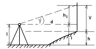 Сущность тригонометрического нивелирования заключается в определении превышений h между двумя точками с помощью наклонного луча визирования и отвесной рейки.
