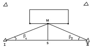 - измеряются все внутренние углы в триангуляционной сети и измеряется длина базисной стороны.