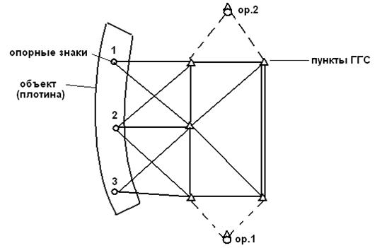 - Координаты опорных точек определяют после их установки и уточняют в начале наблюдений.