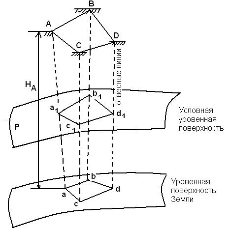 Проектирование производится на уровенную поверхность Земли, по отношению к которой отвесные линии являются нормалями.