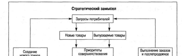 Обычный процесс реализации стратегии протекает следующим образом: запросы потребителей относительно новой или уже выпускаемой продукции приводят к формированию приоритетов, которые затем становятся обязательными для операций. На рис. 2.1 наглядно отображено, что эти
