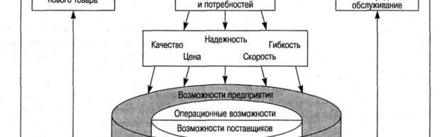 приоритеты объединяются в своеобразный "цилиндр" возможностей предприятия, поскольку операции не могут удовлетворить покупательские потребности без проведения научно-исследовательских и конструкторских работ, без связи со сбытом, а также без прямой или косвенной поддержки финансового, кадрового и информационного менеджмента. Определив требования к рабочим характеристикам, производственное подразделение фирмы использует все свои потенциальные возможности (а также возможности своих поставщиков) для того, чтобы эти требования выполнить, т.е., иными словами, стать "победителем заказа". Возможности компании