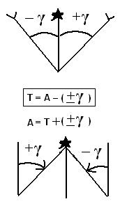 В зависимости от начального исходного направления такими углами являются: