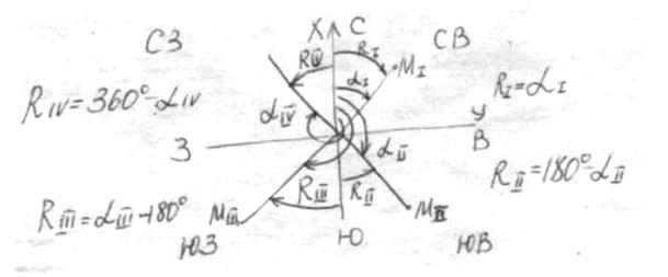 стран света. I — СВ II — ЮВ III — ЮЗ IV — СЗ