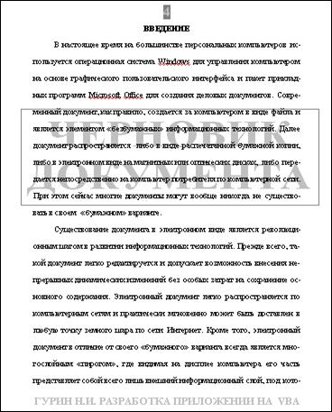 Информация в электронном документе, являющаяся его основой, представляет собой внешний «слой» документа, под которым спрятаны его управляющие структуры. При этом внешний слой также может состоять из нескольких уровней, которые накладываются друг на друга. Например, в документе Word имеются два основных слоя: текстовый слой документа и слой колонтитулов, каждый из которых можно увидеть независимо и одновременно в режиме Разметка страницы. При этом информация, размещенная на слое колонтитулов, обычно повторяется на каждой странице (кроме нумерации страниц, которая автоматически изменяется на каждой странице) и может быть размещена, кроме самих колонтитулов, в рамке Надпись, вставленной между колонтитулами, и таким образом «подложена» под текстовую информацию документа в виде водяных знаков (см. рис. 1.1).