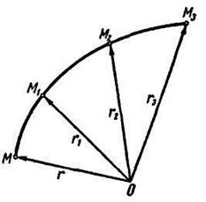 Траектория точки М при векторном способе — это геометрическое место точек концов радиуса-вектора