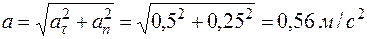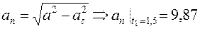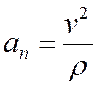 Для определения нормальной составляющей вектора полного ускорения воспользуемся формулой
