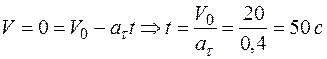 Задача 2. Поезд движется со скоростью 20 м/с. При торможении ускорение равно 0,4 м/с 2. Найти время и путь торможения.