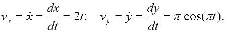 Для определения скорости точки М вычисляем первые производные от координат по времени, равные проекциям скорости точки на соответствующие оси координат: