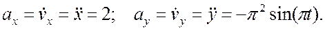 Для определения ускорения точки М вычисляем первые производные от проекций скорости или вторые производные от координат по времени, равные проекциям ускорения точки на соответствующие оси координат: