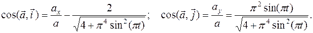 Направление вектора ускорения определяем при помощи направляющих косинусов