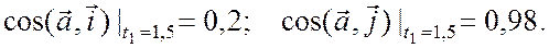 В момент времени t 1 направляющие косинусы вектора ускорения