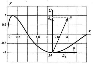 точки М учтем, что его можно определить как проекцию вектора полного ускорения на направление касательной к траектории