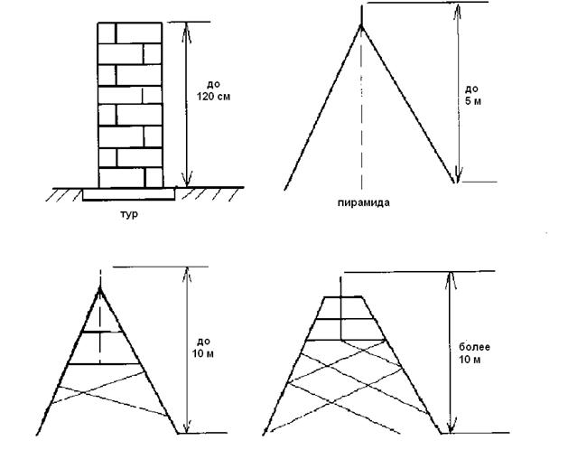 - марки закладываются над поверхностью земли на высоте до 1,5м; реперы стенные — на высоте 0,5м.