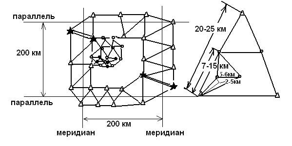 - для обоснования крупномасштабных съемок (1: 10000 — 1: 25 000), когда