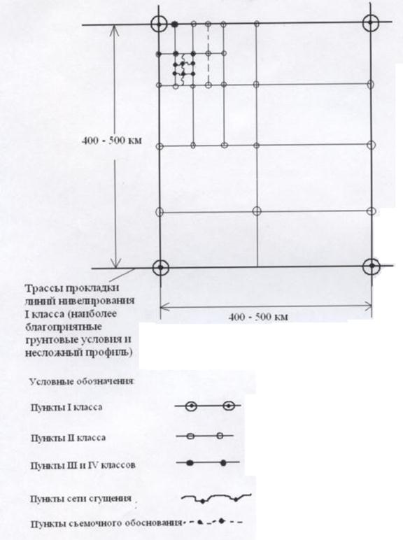 Принципиальная схема построения высотной государственной геодезической сети.