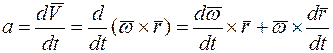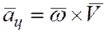 в соответствии с правилом векторного произведения направлен по касательной к траектории точки М, т. е. как касательное ускорение точки М, которое во вращательном движении называют вращательным ускорением (рис. 7):