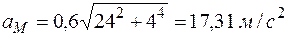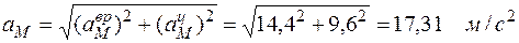 Модуль полного ускорения точки М можно найти по формуле (15):