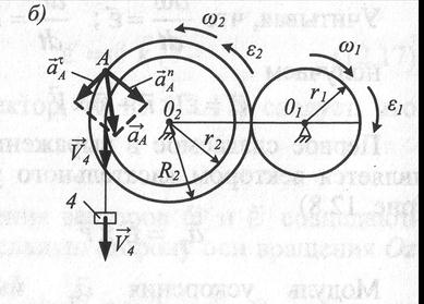 . Рейка 4 движется поступательно, поэтому все её точки имеют одинаковые ускорения. Точка D одновременно принадлежит рейке 4 и ободу колеса 3 радиуса
