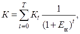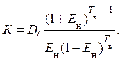 Полученный эффект Е н × К в конце года также вкладывается в некоторый проект с эффективностью Е н. И так далее до конца жизни проекта. Величина Е н постоянна на протяжении всей жизни проекта.