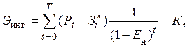 Интегральный эффект Э инт, или чистый дисконтированный доход (ЧДД), определяется как сумма текущих эффектов за весь расчетный период, приведенная к начальному шагу, или как превышение интегральных результатов над интегральными затратами.