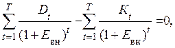 Метод внутреннего коэффициента экономической эффективности заключается в определении нормы дисконта, которая уравнивает дисконтированную величину дохода, ожидаемого за расчетный период в результате осуществления инвестиционного проекта, с суммой капиталовложений, требующихся для осуществления проекта. Иными словами, внутренний коэффициент экономической эффективности – это норма дисконта, при которой экономический эффект за расчетный период равен нулю. Таким образом, внутренний коэффициент экономической эффективности определяется из решения уравнения относительно неизвестного Е вн: