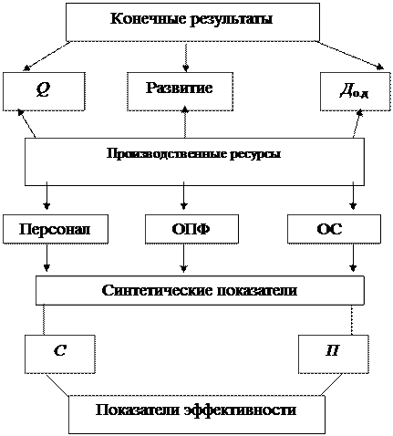 К синтетическим (интегральным) показателям относятся себестоимость единицы услуги (С), а также прибыль от реализации основной деятельности (П). К показателям эффективности относятся рост производительности труда, фондоотдачи, фондовооруженности, коэффициента оборачиваемости оборотных средств, снижение себестоимости услуг, повышение рентабельности производства.