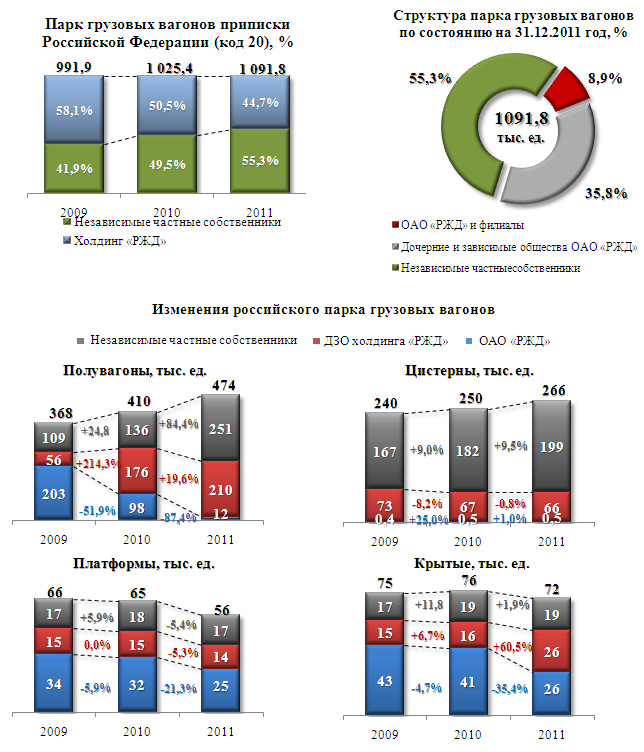 Основными собственниками грузовых вагонов внутри холдинга ОАО "РЖД" являются:
