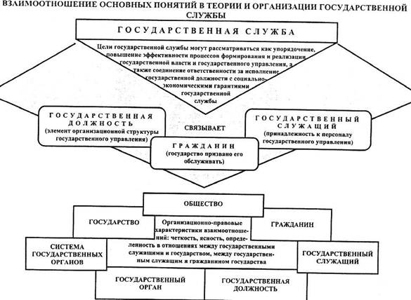 Служба в государственных органах, государственных и общественных организациях является одним из видов социальной деятельности людей. Служба государству неразрывно связана с самим государством, его ролью в жизни общества. Это одна из сторон деятельности государства по организации и правовому регулированию личного состава государственных органов, других государственных организаций. Государственная служба, прежде всего – служение государству, то есть выполнение по его поручению, за плату от него определенной деятельности по реализации задач и функций государства в государственных предприятиях. Закон «Об основах государственной службы в Российской Федерации» рассматривает государственную службу в более узком смысле, как деятельность тех служащих, которые составляют «аппарат», корпус руководителей, специалистов государственных органов.