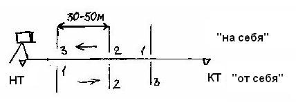 Процесс измерения длин линий состоит в последовательном откладывании мерного прибора в створе линии.