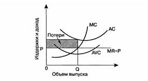 ü цена ниже минимально возможных средних издержек, т. е. фирма не покрывает всех своих издержек и несет убытки (РИС. 4)
