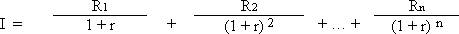 Допустим, что I – предельная стоимость инвестиций, Rj – предельный вклад инвестиций в увеличение дохода (или сокращение издержек) в j –й год службы.