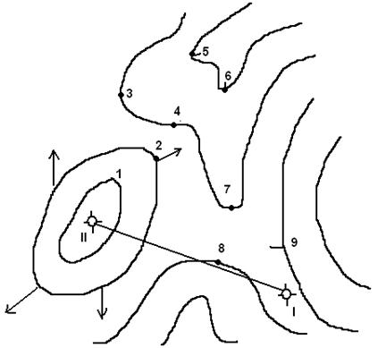 6. По высотам станций, реечных точек провести горизонтали способом графической