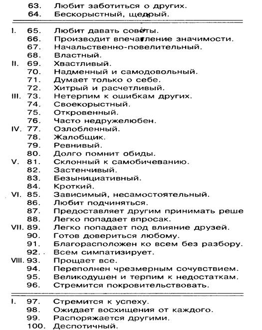 | Аффекты | Опекунство | Благотворительность | Усердие | Назидание | Личное влияние | Уважение | Моральные влияния | Любовь |