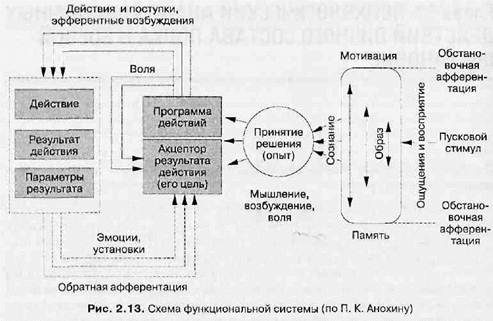 Структуру и последовательность осуществления действия можно четко проследить на схеме функциональной системы, предложенной П. К. Анохиным (рис. 2.13).